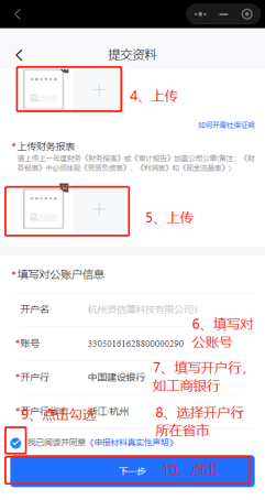 ①确认订单信息。请再一次确认资质信息、申请人信息、付款方式及金额。确认无误后,点击“提交”。