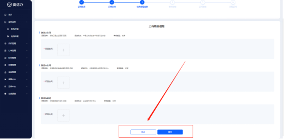 5、完善申报信息。上传申报企业的营业执照,输入申报企业的联系人相关信息(作为后期证书邮寄地址),点击下方“提交”按钮。