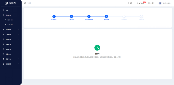 8、等待审核。审核结果将由短信告知,您也可以再次登录商家后台(https://manage.zixinban.com)进行查看。