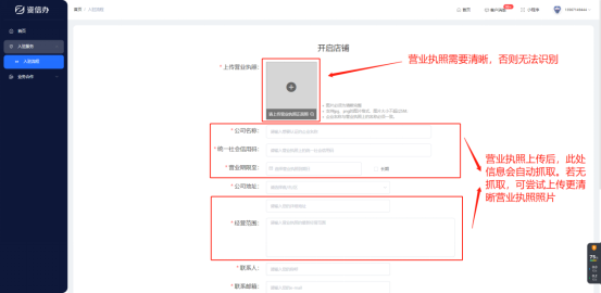 ②按要求上传您公司的营业执照,完善联系信息后,点击“开启获客”按钮。