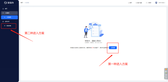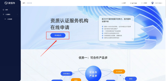1、点击审核页面的“立即查看”按钮,进入机构签约广告页。也可通过点击左侧菜单“业务合作”-“机构申请”进入。