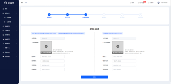注意:公司名称、公司地址、联系人、联系邮箱、联系电话请核实正确,后期合同等书信往来以此信息为准。